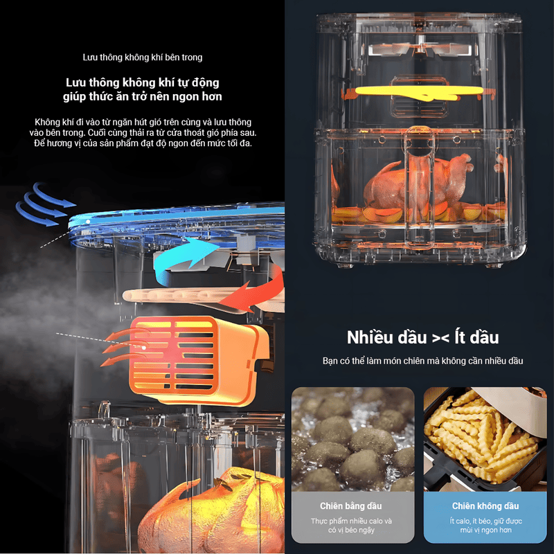 | Công nghệ | Chiên không dầu – Đối lưu khí nóng 360° |